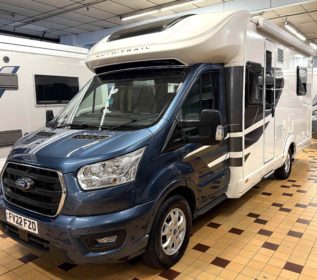 Based around the ever popular Peugeot engine, it has spacious rear U-shaped lounge that converts into two single beds or a large double bed. The kitchen is well-equipped with a full oven (hob, grill, and oven), sink with drainer, microwave, and a 175-litre automatic energy selection fridge. It has a large washroom with a separate shower cubicle, cassette toilet, and washbasin. Heating is provided by a Truma Combi 6kW dual fuel (gas and electric) space and water heater.